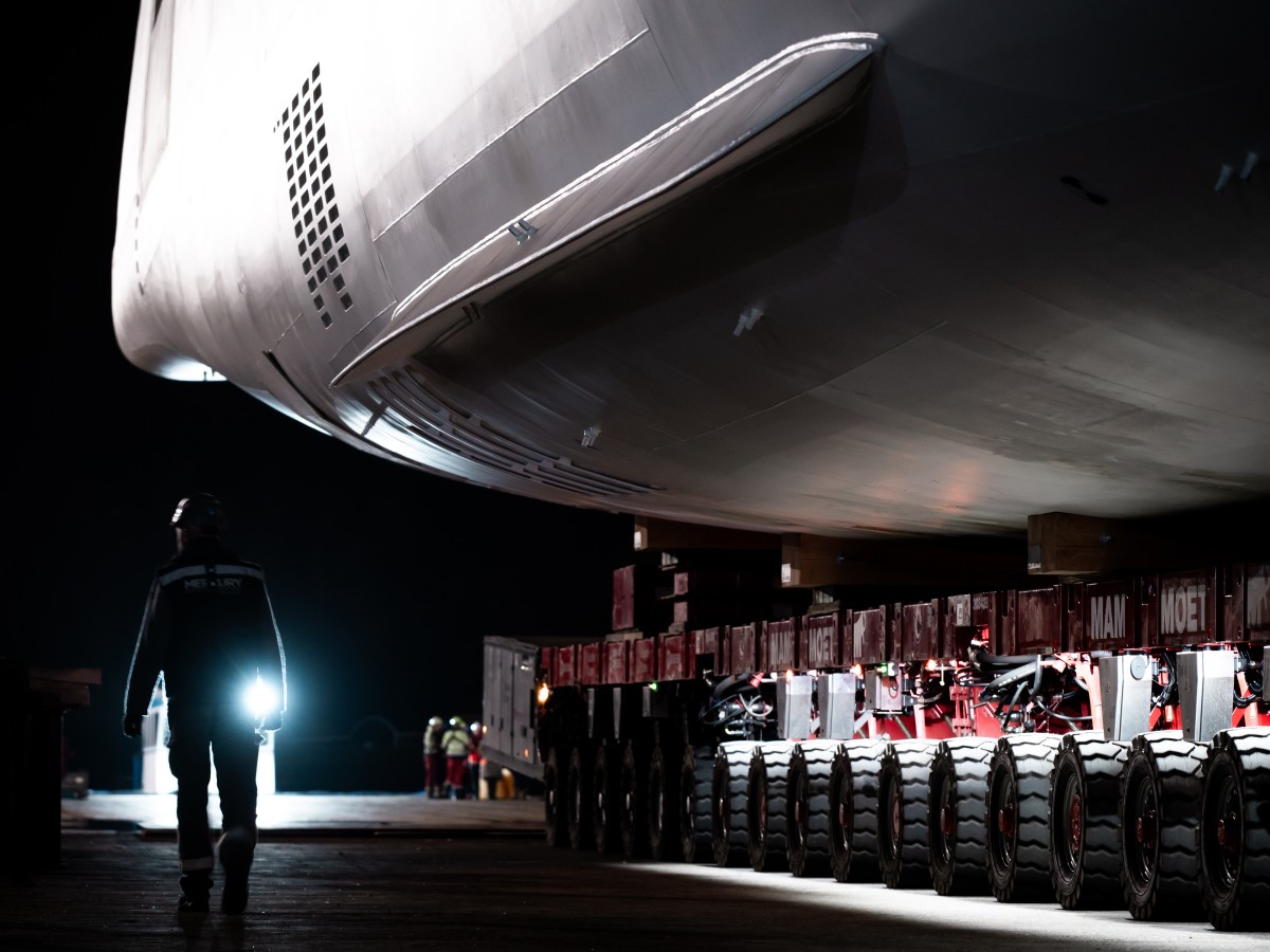 ALBLASSERDAM / ZWIJNDRECHT - Oceanco kondigt met trots aan dat Project Y729 wordt vervoerd van de bouwfaciliteit in Zwijndrecht naar Alblasserdam voor afbouw. Nadat de stalen romp en aluminium bovenbouw zijn geassembleerd en vooraf uitgerust, gaat de Y729 nu de laatste fase van de fabricage in, voorafgaand aan de lancering, proefvaarten en levering in 2027.